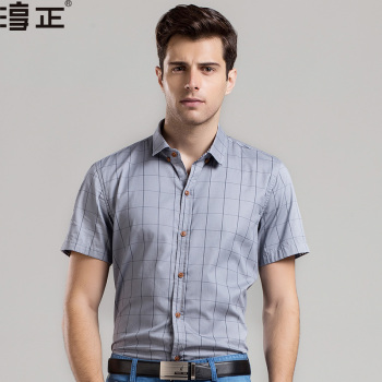 • 商品名称:淳正(honupr)2015夏装短袖衬衫男士休闲修身格子衬衣131139 灰色 XL/41