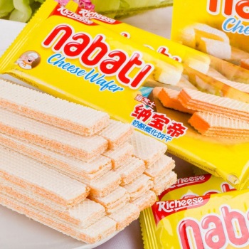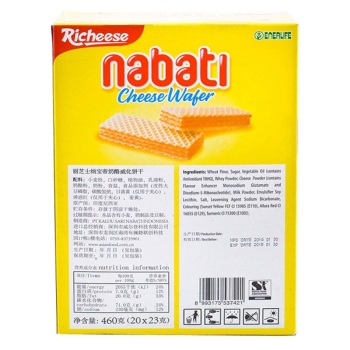 产品描述: 丽芝士纳宝帝威化系列,威化配奶酪,创新美味无法抵挡。浓郁的小麦香,融入乳清奶酪粉,甜而不腻,入口既化,唇齿留香。一盒有20条独立小包装,方便卫生,无论上班、聊天、逛街、旅行都可以随时补充能量。