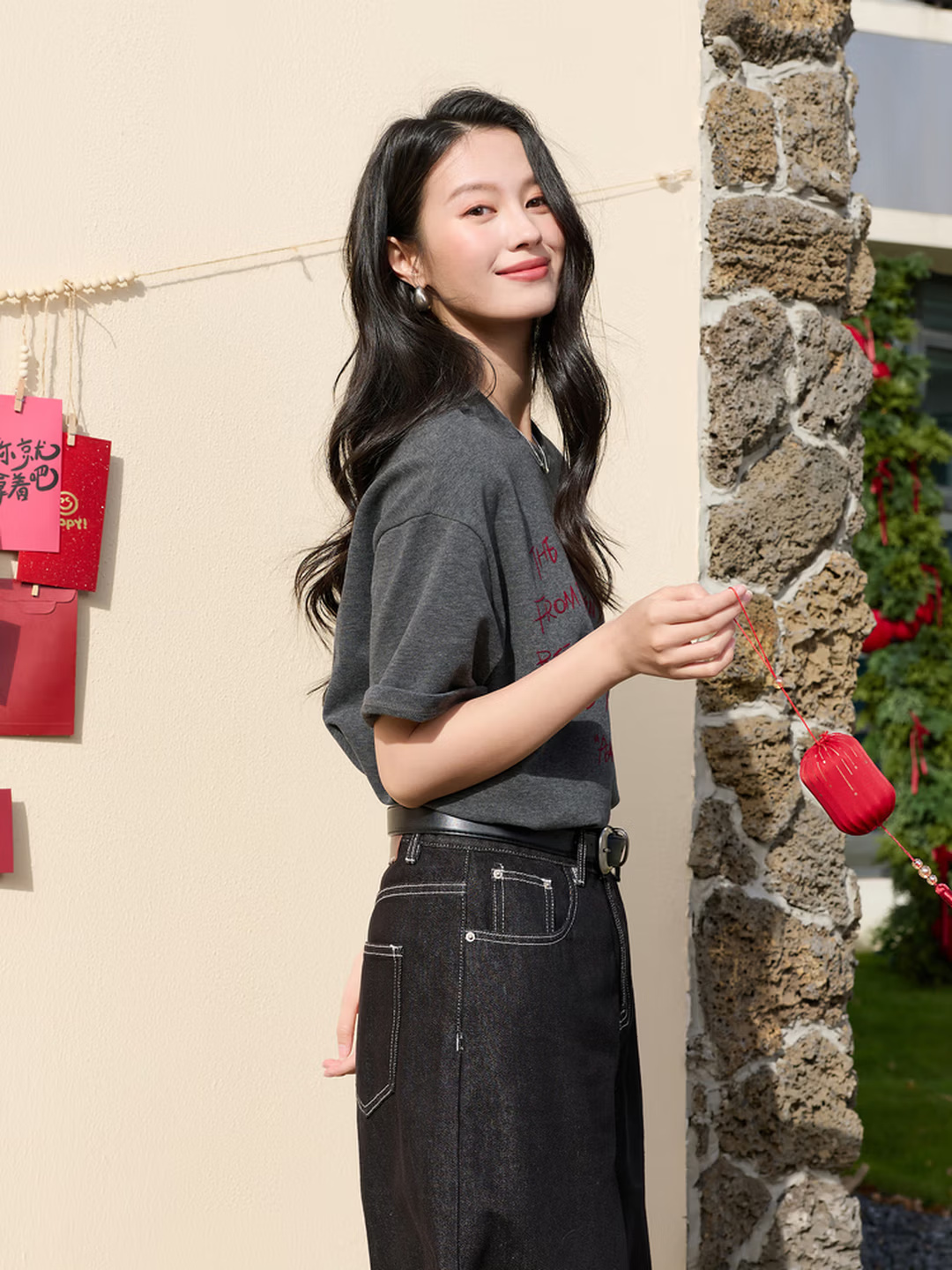 • 商品名称:三彩2025冬季新款字母印花T恤宽松圆领落肩袖休闲上衣百搭M