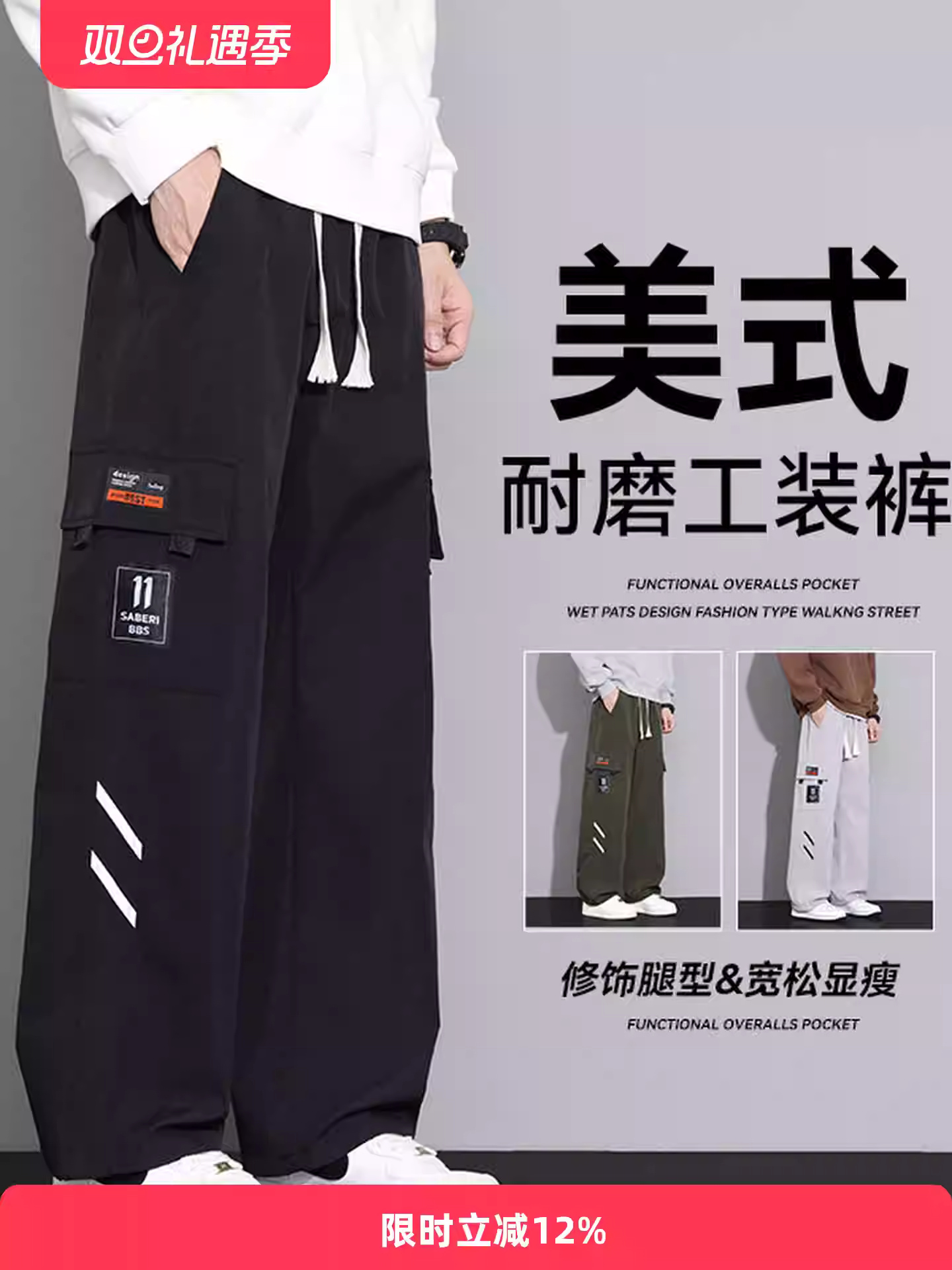 • 商品名称:裤子工装裤男款秋冬潮牌加绒加厚宽松直筒青少年男生阔腿休闲长裤