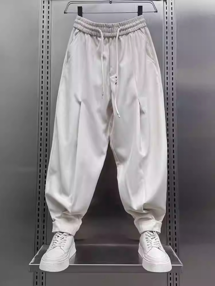 • 商品名称:夏季薄款男士简约休闲裤垂感束脚阔腿裤纯色青年冰丝凉感弯刀裤子