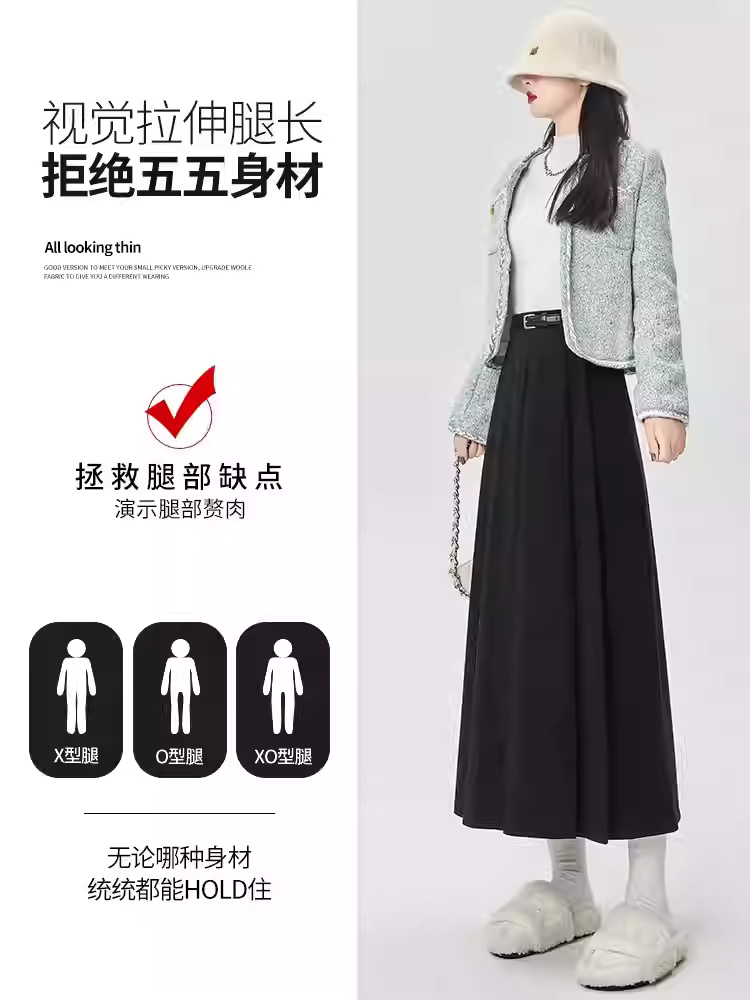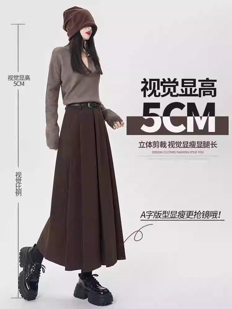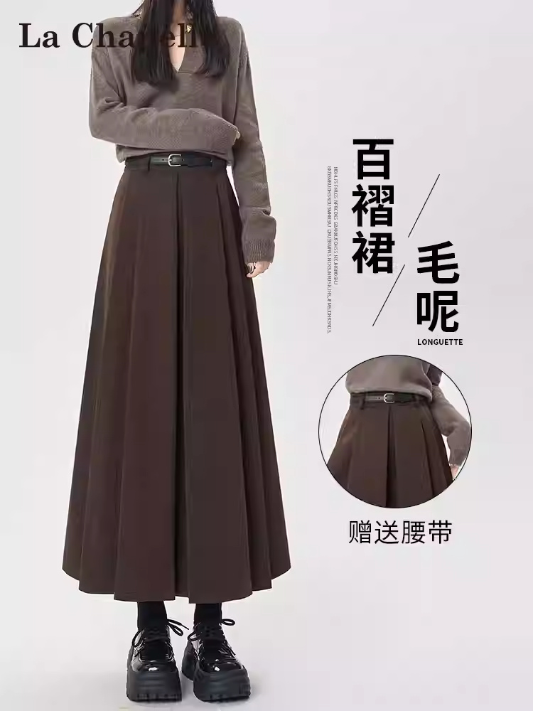 • 商品名称:拉夏贝尔咖色毛呢半身裙女秋冬高级感垂感伞裙高腰a字长款百褶裙