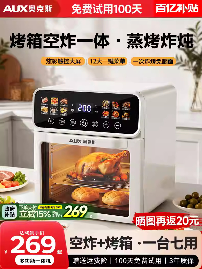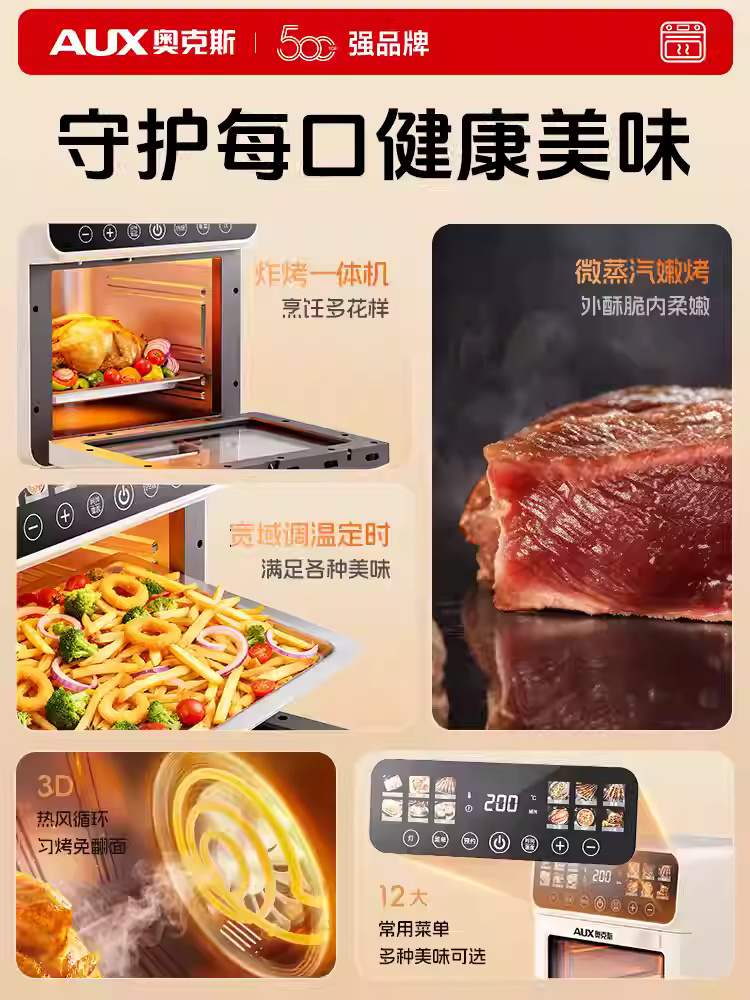 奥克斯电烤箱家用2025新款烘焙专用多功能空气蒸烤微波炉三合一