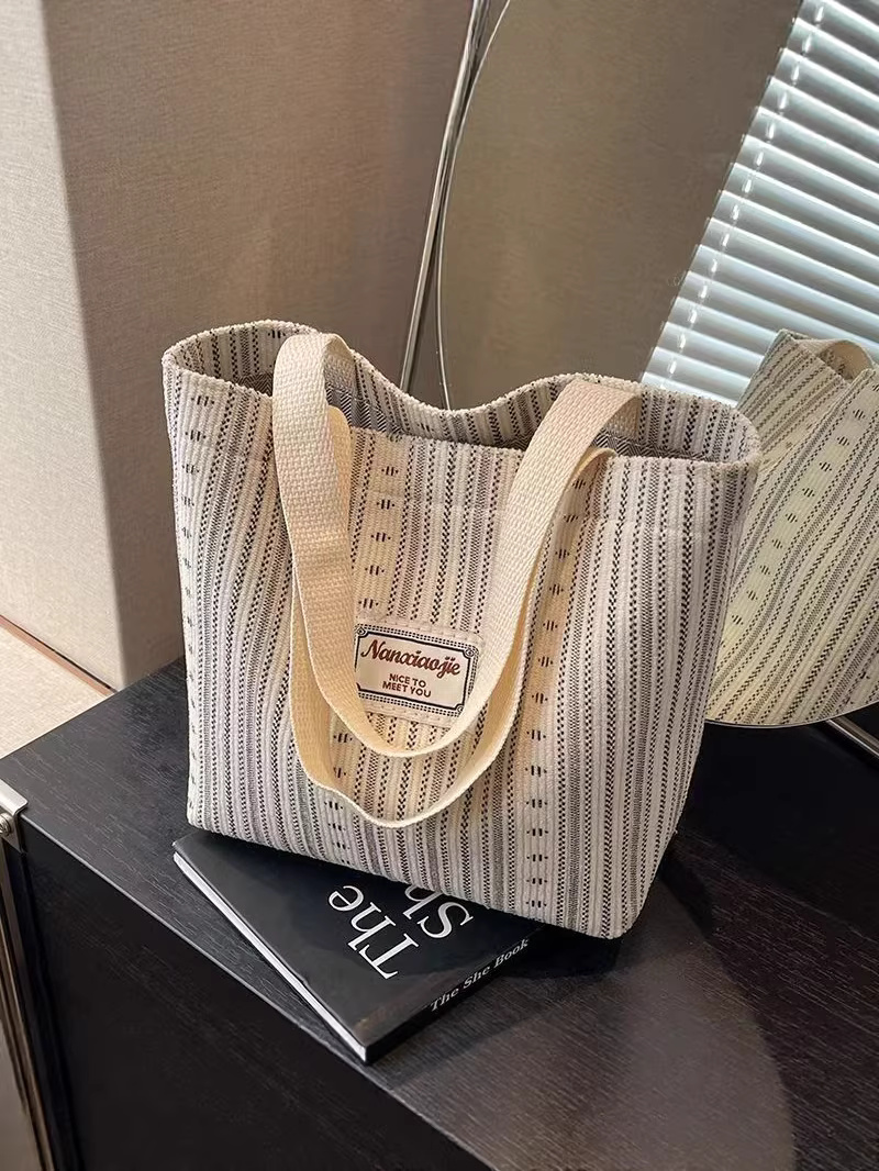 日式包包女2025帆布包时尚条纹手拎单肩包女上课托特通勤包T9