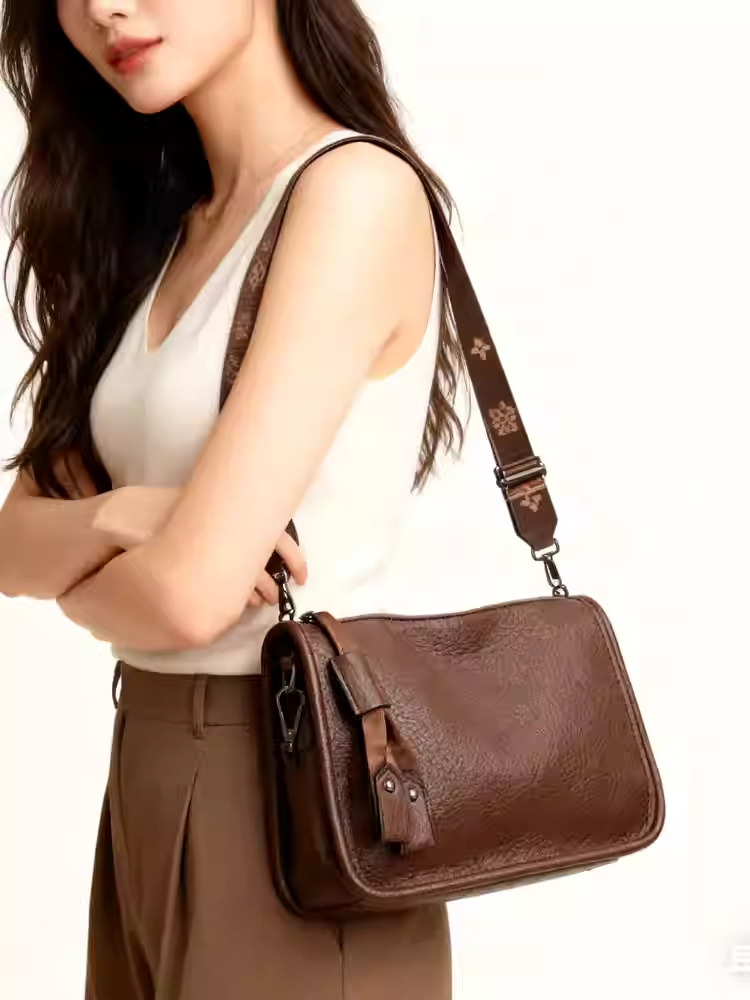 • 商品名称:袋鼠真皮女包2025新款冬复古单肩腋下包时尚大容量宽带斜挎豌豆包