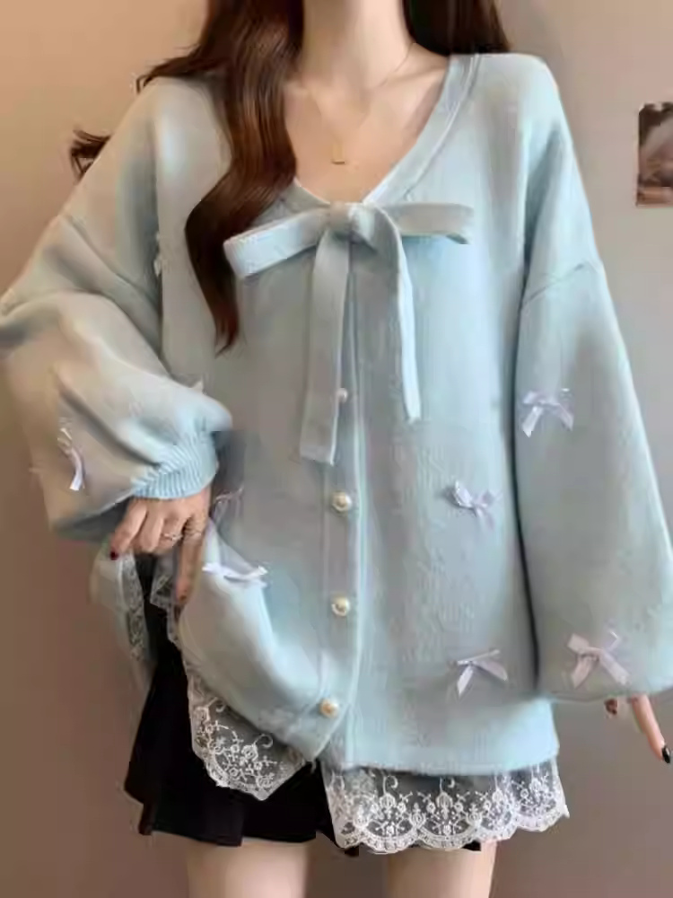 • 商品名称:大码胖mm秋季新款时尚蕾丝边长袖开衫毛衣宽松显瘦简约百搭上衣女
