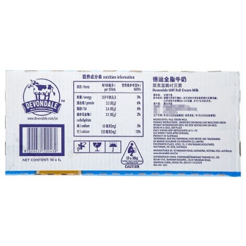 • 商品名称:澳大利亚 进口牛奶 德运(Devondale) 全脂牛奶 1L*10 整箱装