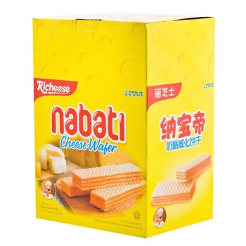 产品描述: 丽芝士纳宝帝威化系列,威化配奶酪,创新美味无法抵挡。浓郁的小麦香,融入乳清奶酪粉,甜而不腻,入口既化,唇齿留香。一盒有20条独立小包装,方便卫生,无论上班、聊天、逛街、旅行都可以随时补充能量。