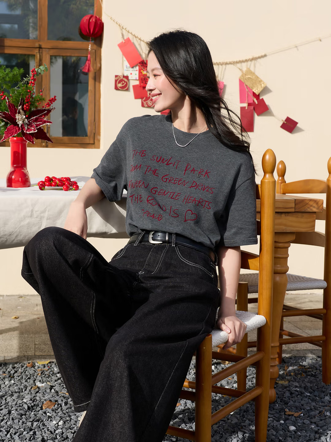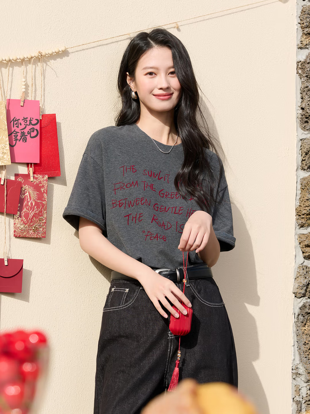 • 商品名称:三彩2025冬季新款字母印花T恤宽松圆领落肩袖休闲上衣百搭M
