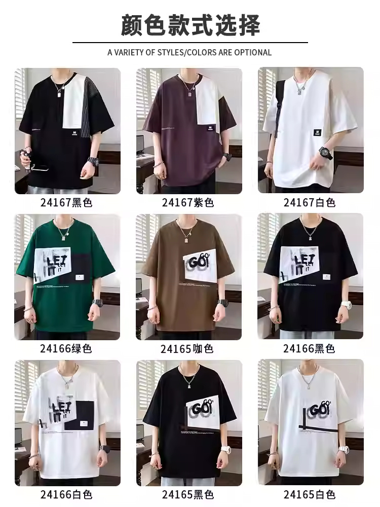 • 商品名称:重磅短袖T恤男夏季潮牌圆领阔版拼接半袖青少年宽松休闲五分体恤t
