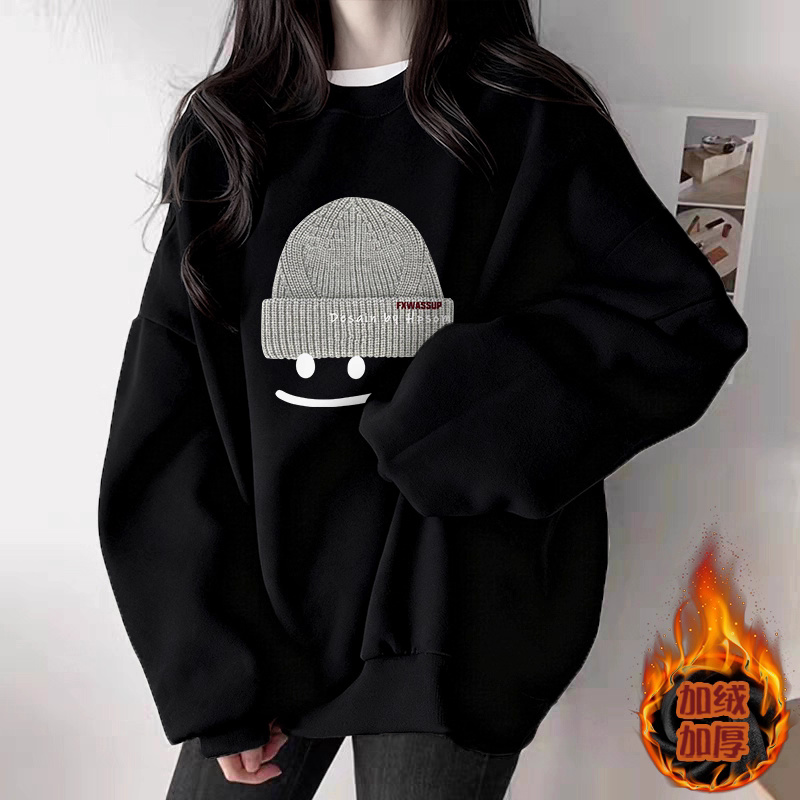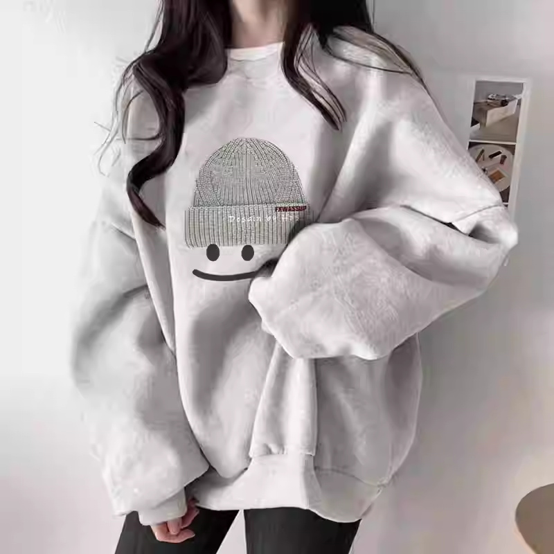 • 商品名称:冬季白灰色圆领卫衣女2025新款爆款时尚洋气上衣加绒加厚长袖外套