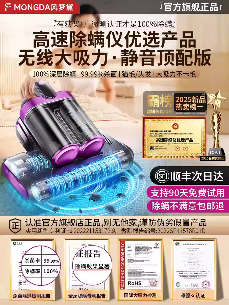 • 商品名称:除螨仪家用床上吸尘器猫毛除螨虫神器无线紫外线杀菌机专用二合一