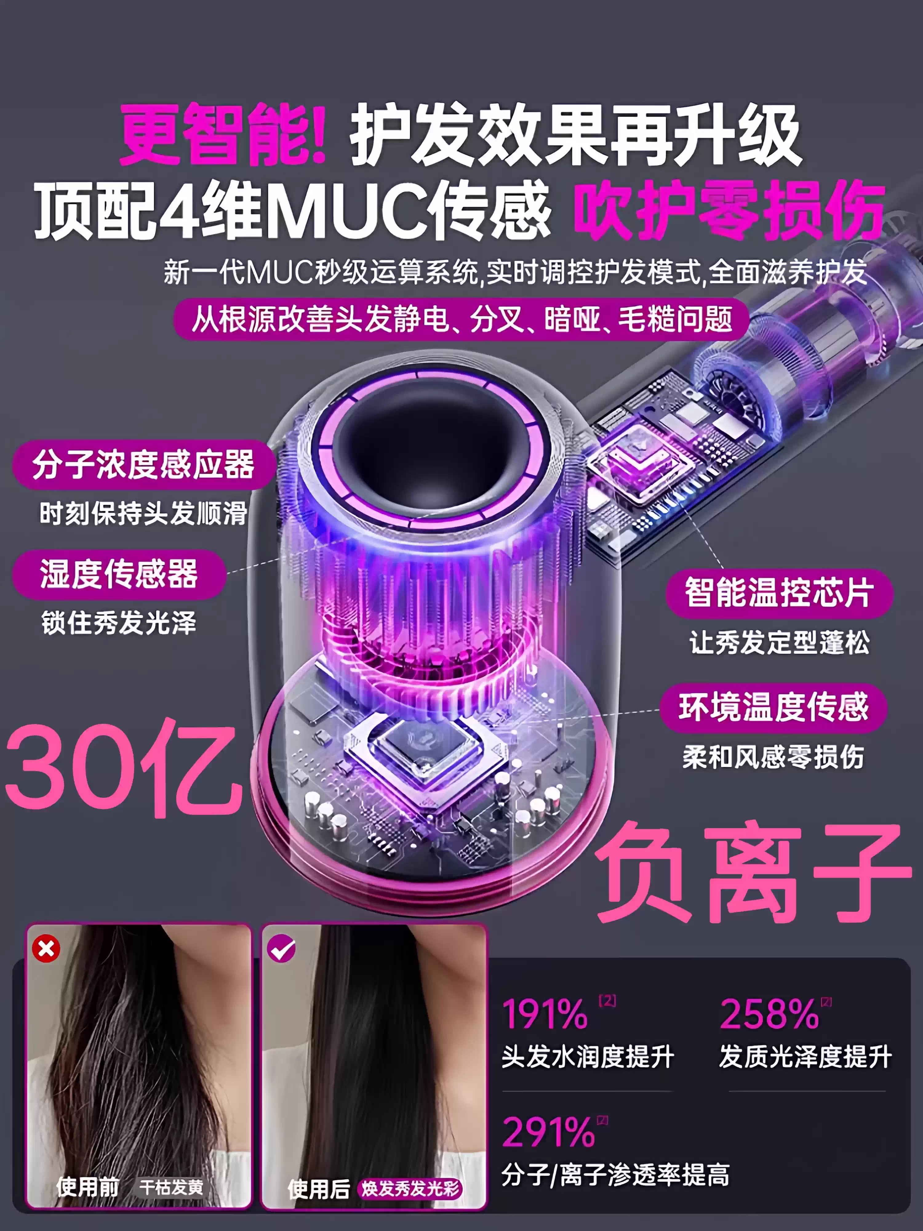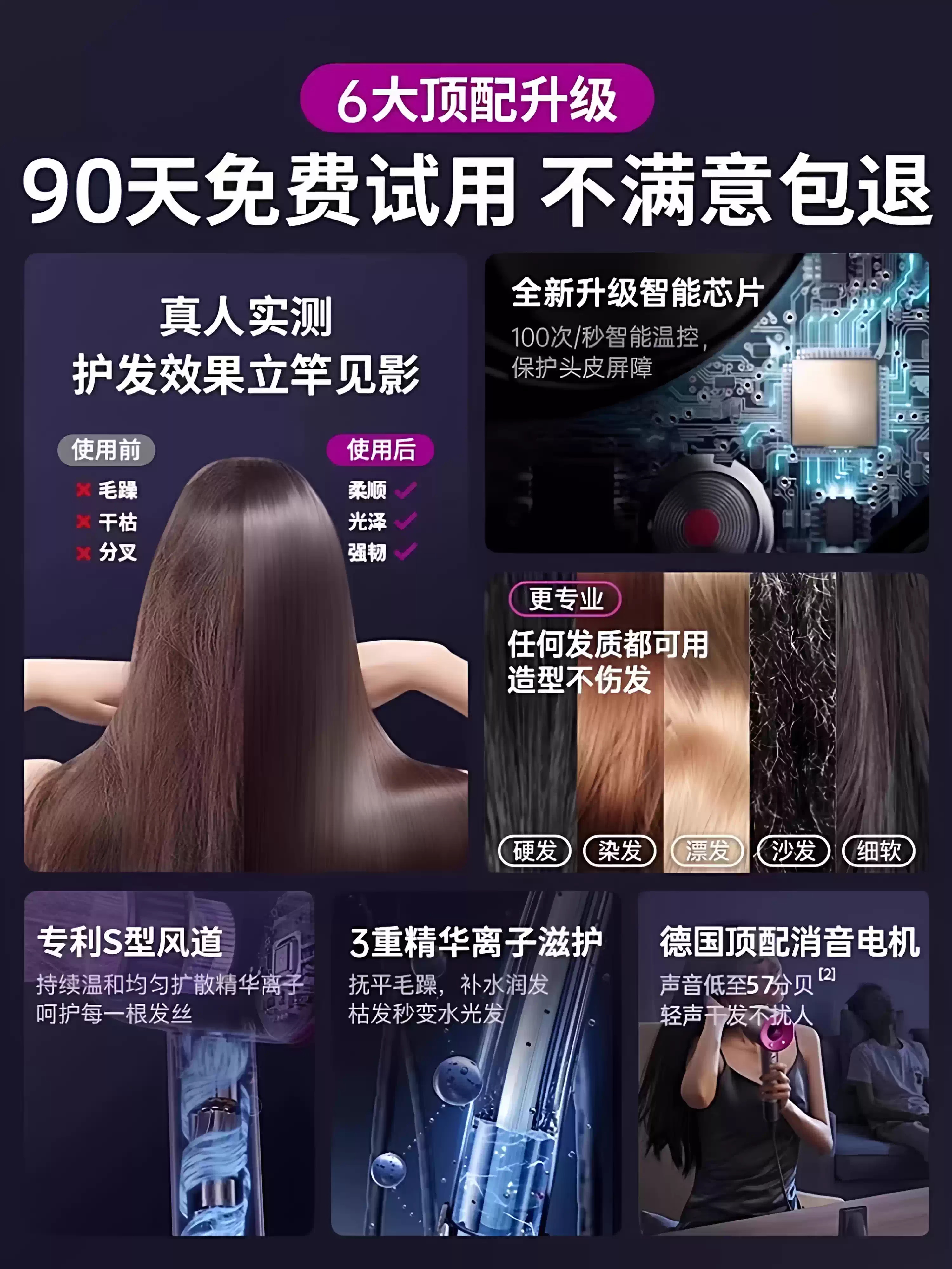 • 商品名称:电吹风机负离子护发静音速干家用大风强力2025新款华强北电吹风筒
