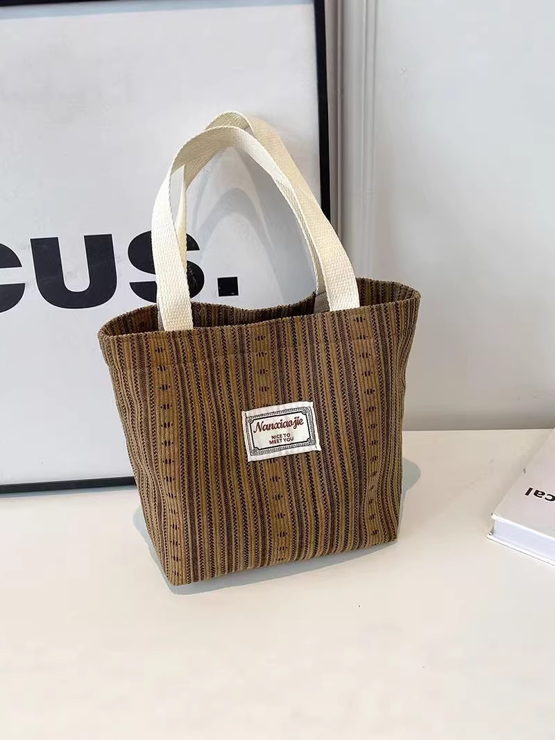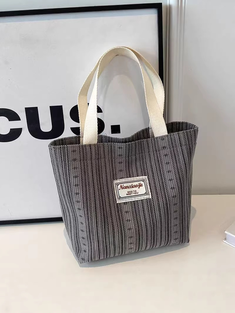 日式包包女2025帆布包时尚条纹手拎单肩包女上课托特通勤包T9