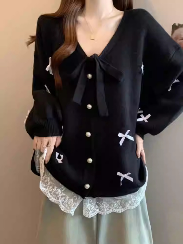 • 商品名称:大码胖mm秋季新款时尚蕾丝边长袖开衫毛衣宽松显瘦简约百搭上衣女